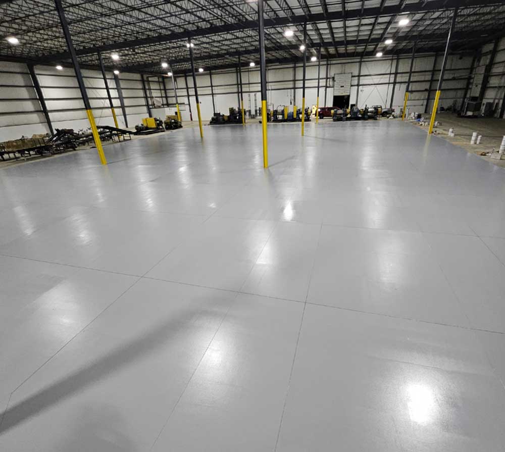 Industrial epoxy flooring uses heavier-duty products like high wear urethane and urethane cement systems designed for larger-scale operations and more demanding conditions than standard commercial applications.